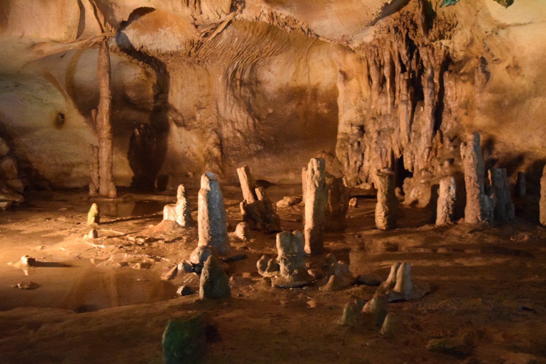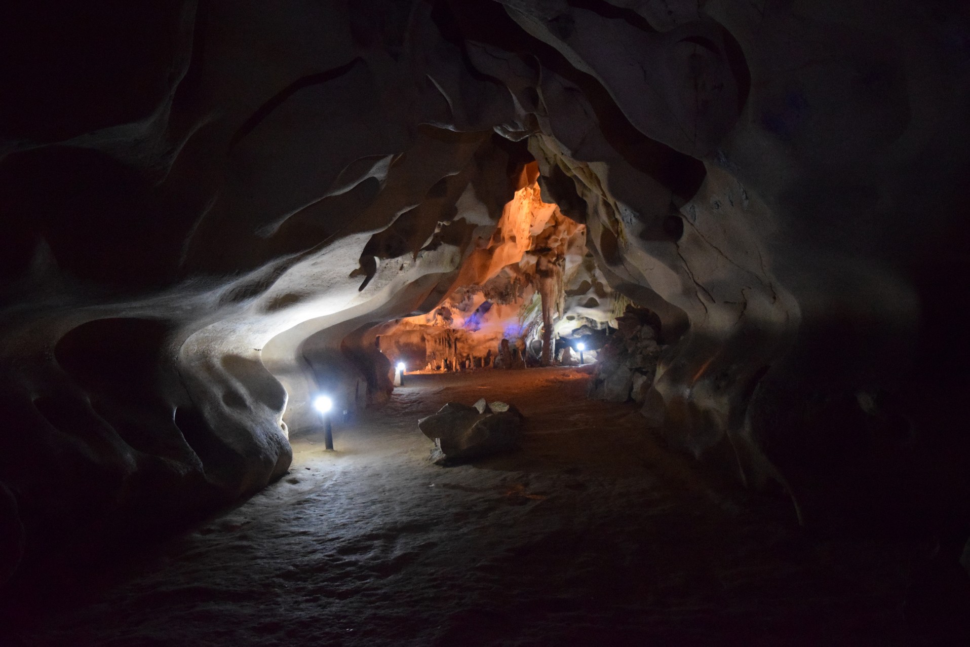 Avec des lumières colorées et tamisées, on assiste à un spectacle grandiose où le calcaire joue son plus grand spectacle, la danse de la gravité. Bien fournit en stalactites et stalagmites, les galeries de la montagne sont vastes et prolongées.