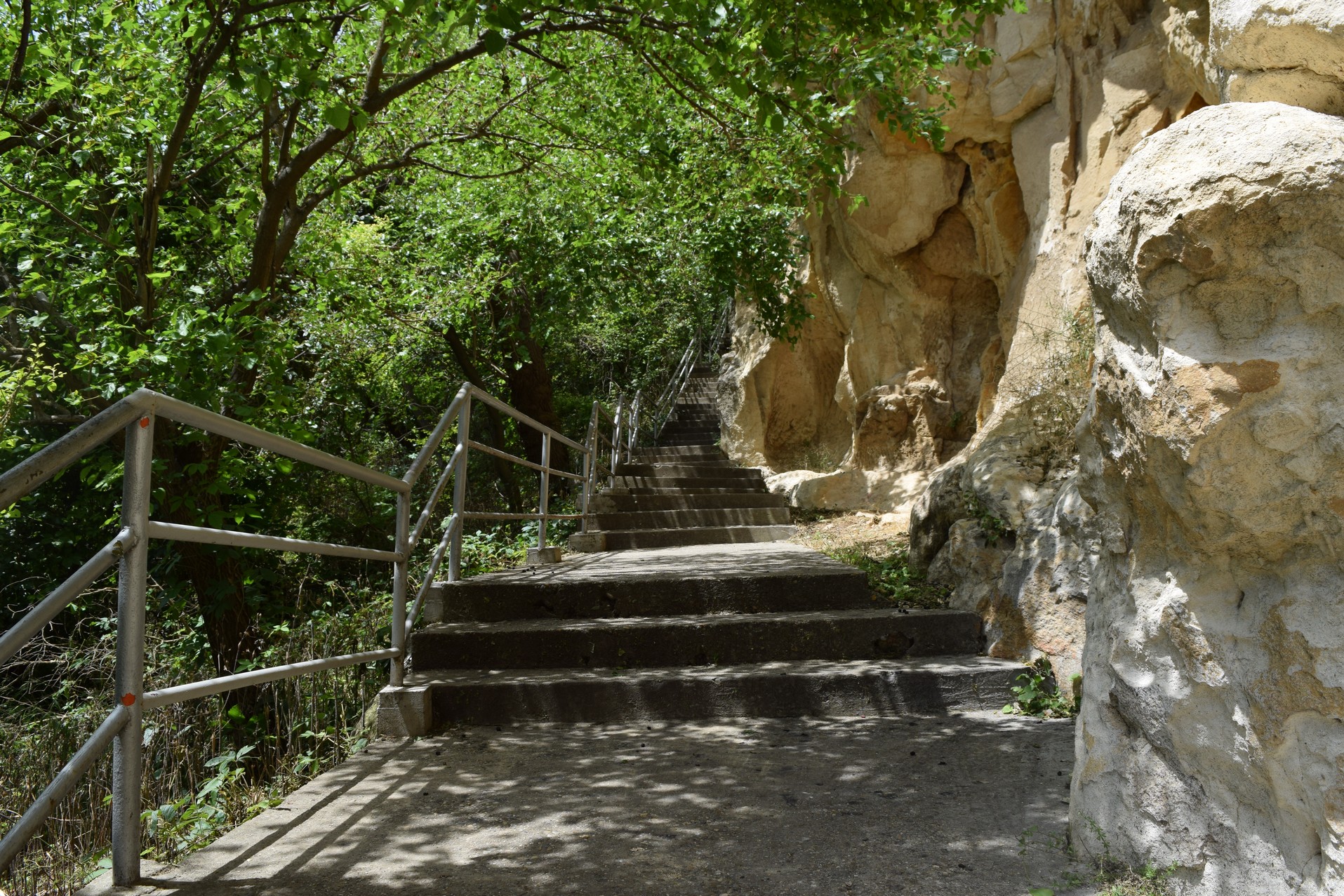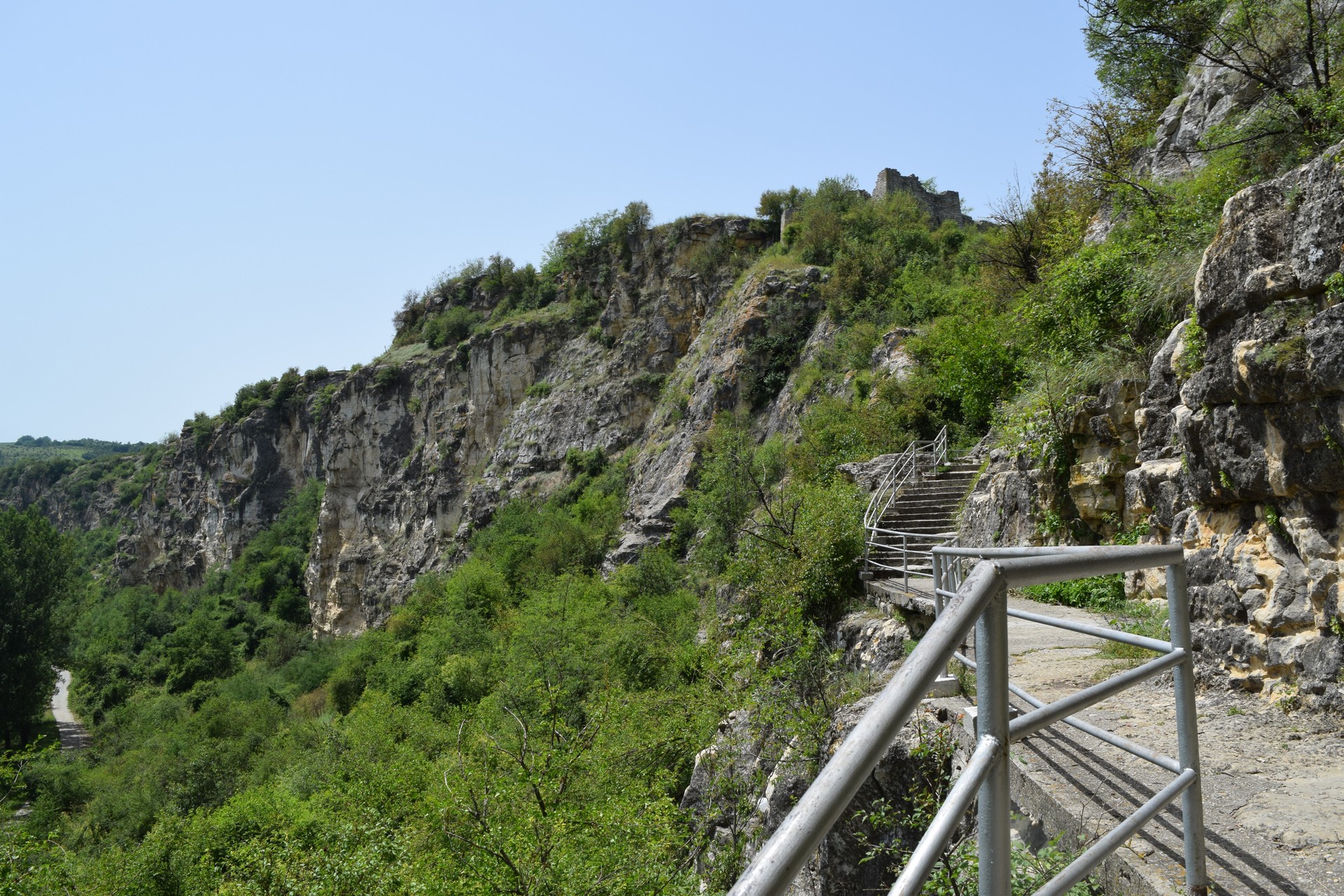 Parce que s’il ne s’agissait que d’accéder directement à la citadelle, cela irait encore, mais là, c’est environ 300 m d’escalier que vous devez gravir, au soleil. A certains moments, vous longez des chemins étroits bordant la rocaille calcaire, parfois, vous vous retrouvez à l’ombre des arbres pour un court répit.