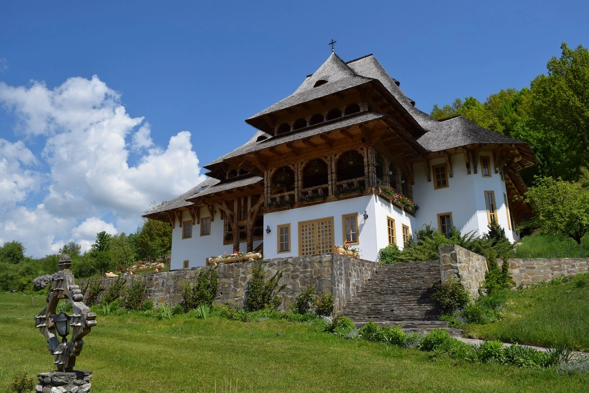 Son architecture s’inscrit dans la tradition du Maramureș, région réputée pour ses églises en bois classées au patrimoine mondial de l’UNESCO. Les bâtiments du monastère sont entièrement réalisés en bois, sans l’utilisation de clous, une technique ancestrale qui témoigne du savoir-faire des artisans locaux. L’église principale, avec son impressionnant clocher de 57 mètres de hauteur, est l’une des plus hautes constructions en bois d’Europe.