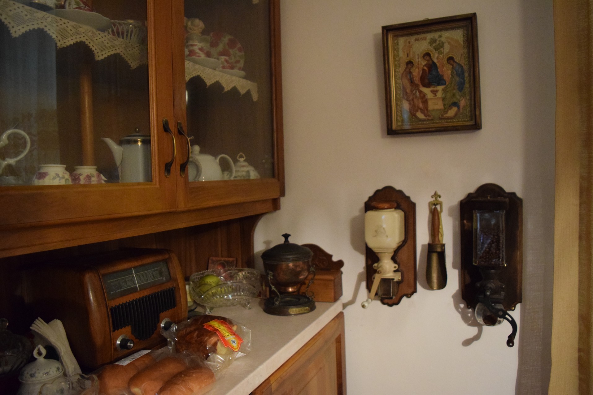 Le salon s’ouvre à moi après avoir passé le petit vestibule et ses milles et un objet attirent l’œil à ne plus savoir où donner de la tête ! Chaises de toutes formes et de tous volumes, petits poêles à bois métalliques, piano, violon Stradivarius, une magnifique collection qui peut vous valoir au moins une heure à en découvrir les subtilités. Objets et meubles ont leur histoire, leur provenance et leur symbole. Les instruments musicaux pour la passion qu’éprouve Anuta pour la musique en est un exemple…